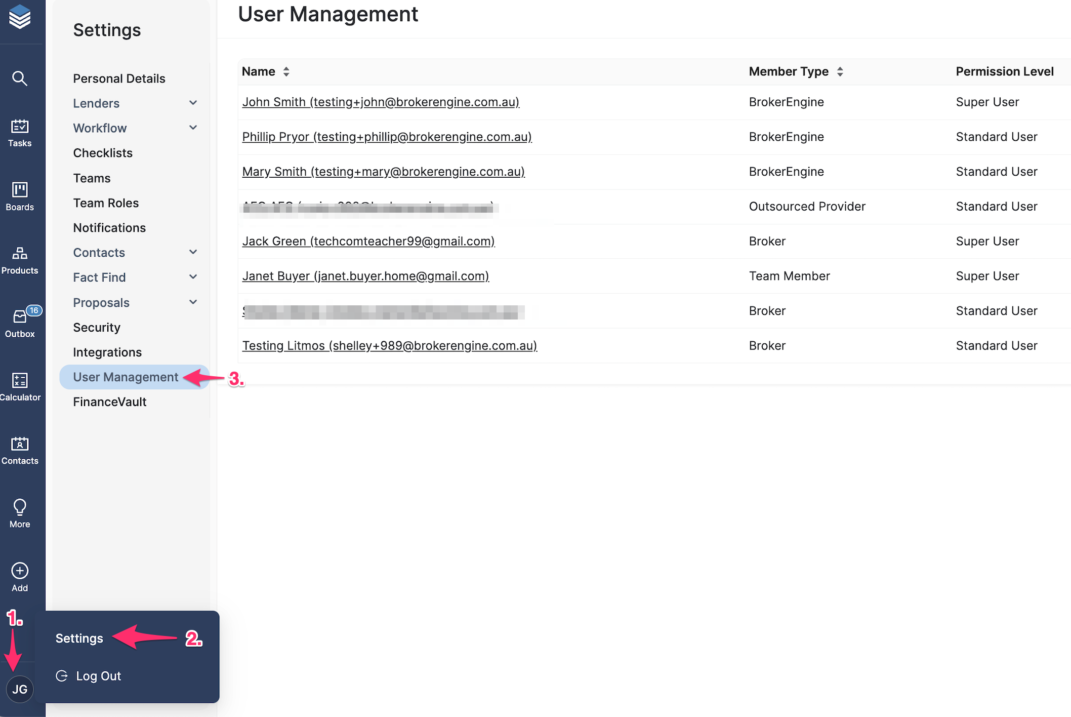 Access to the User Management page is disabled by default. To enable this feature, contact the BrokerEngine support team and request access to Super User permissions. Users with other permission levels (e.g. Standard User) cannot access the User Management page.