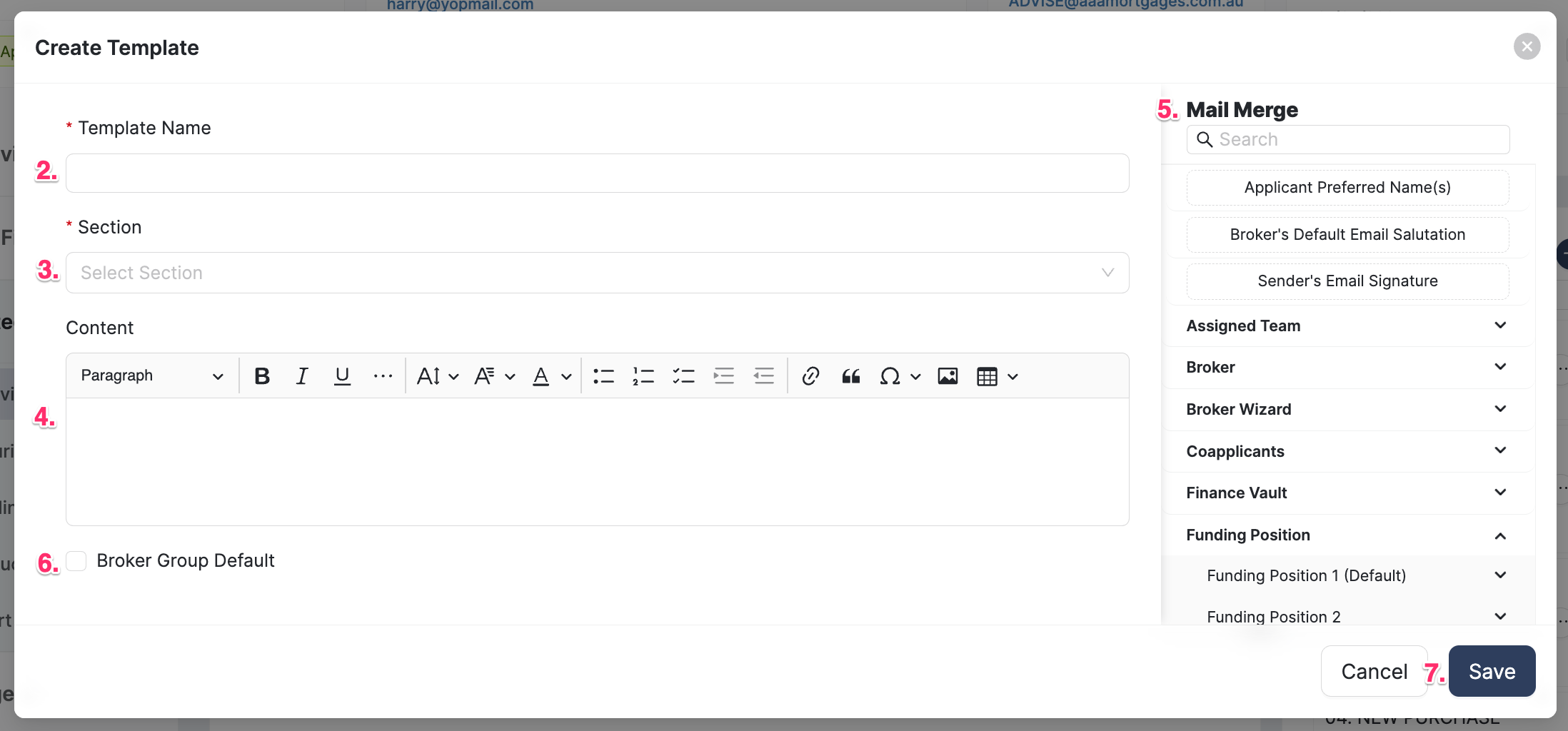 BrokerEngine adds the merge field to the message. Repeat the steps to add more merge fields. Click Save.