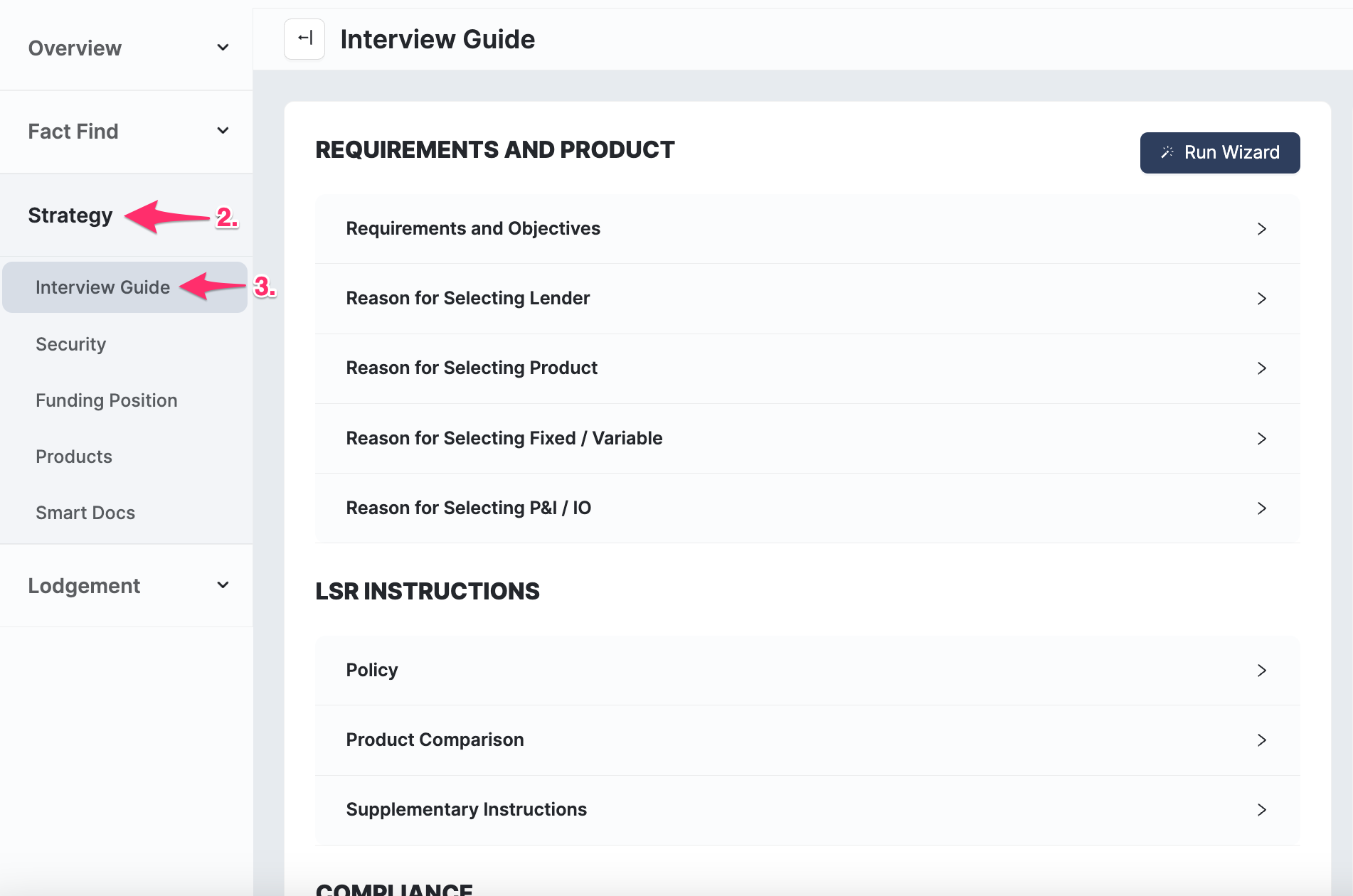 The Interview Guide is our mini-compliance wizard and the perfect place to set up your compliance notes. The wizard compiles information into concise subsections about the client's goals and objectives.