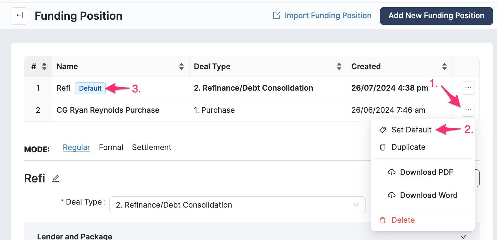 A client funding position sets a single point of reference that you can use to build client facing product scenarios and reports. It also serves as the 'source of truth' for key details of the deal for the team cross reference and proactively update the client with throughout the process of the deal.