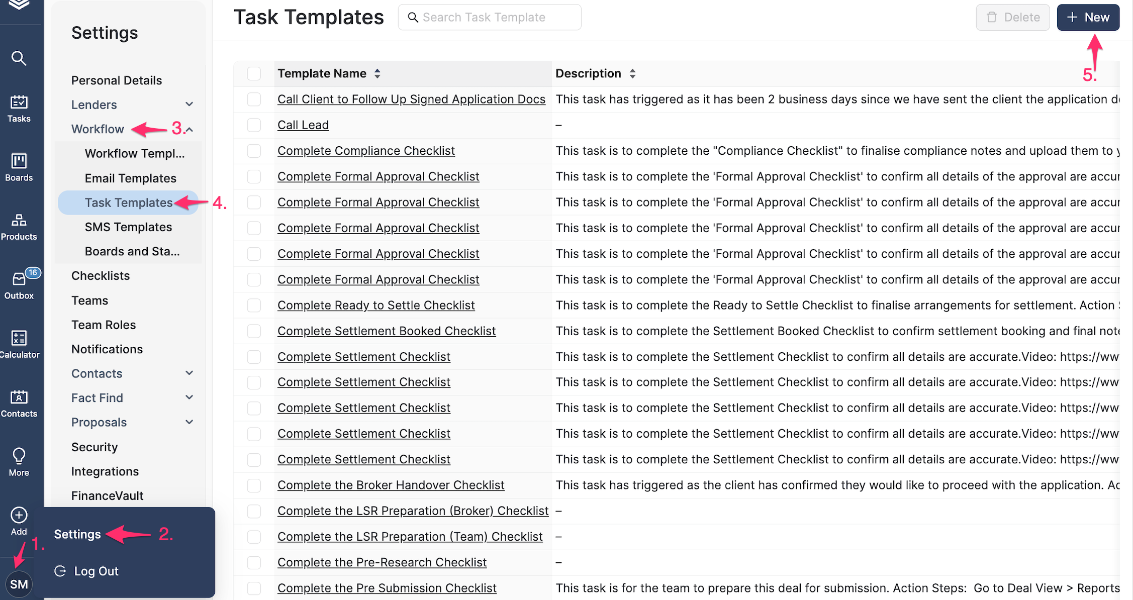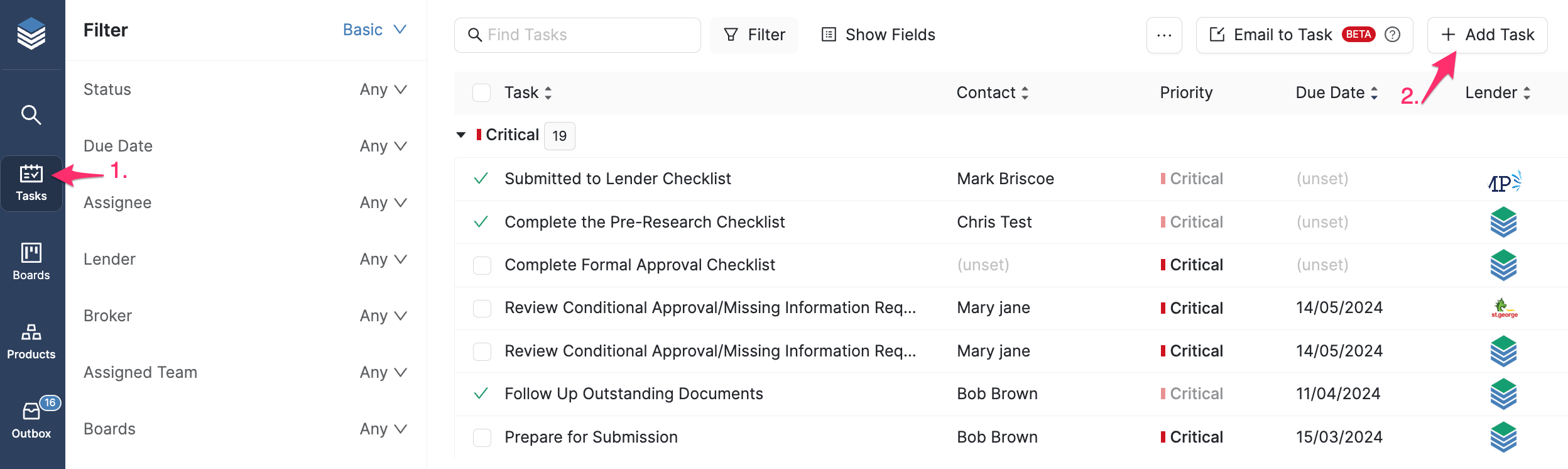 - From any page, click on Tasks on the left hand menu bar.