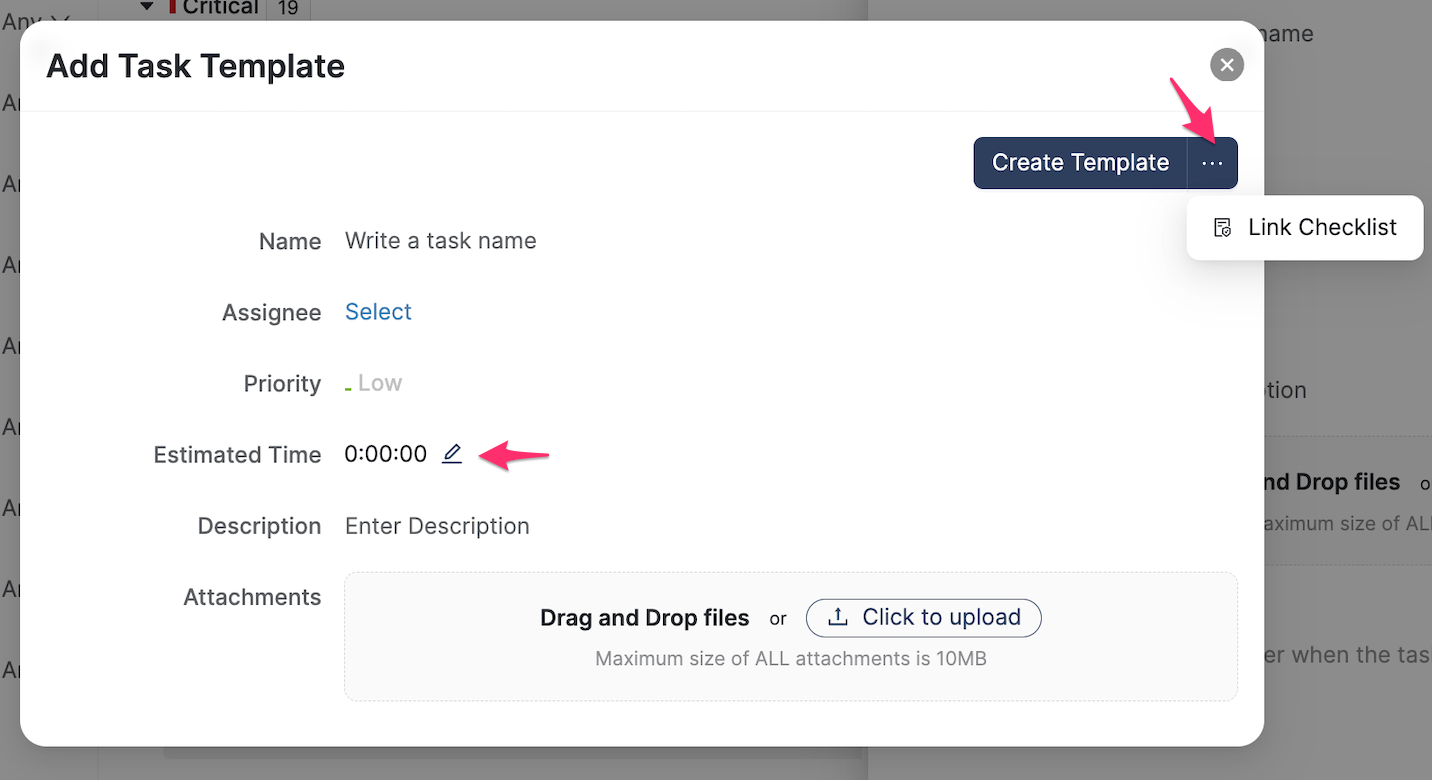 To ensure the assignee completes a checklist in conjunction with completing the task, click the three-dot icon and select Link Checklist. Select the appropriate template.