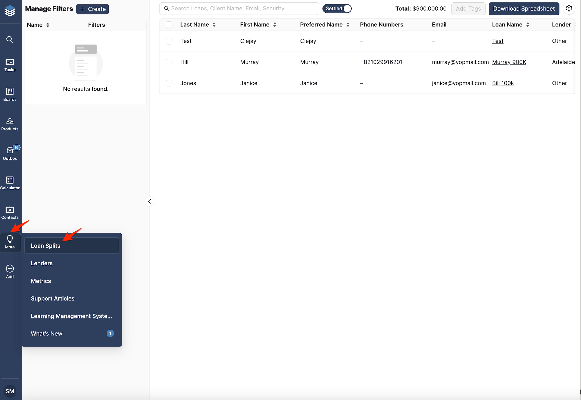 First, open the Loan Splits page.