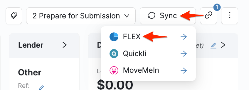 BrokerEngine displays information about the link to FLEX, including the FLEX ID. Look up the application in FLEX to confirm your lead or deal is linked correctly.