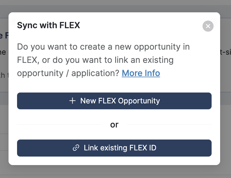 - BrokerEngine asks if you want to create an opportunity in FLEX or link to an existing one. Click Link Existing FLEX ID.