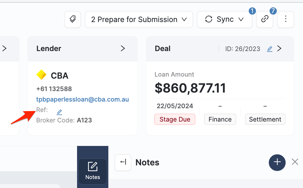 Update the Lender Reference field in the Lender Details section of a lead or deal.