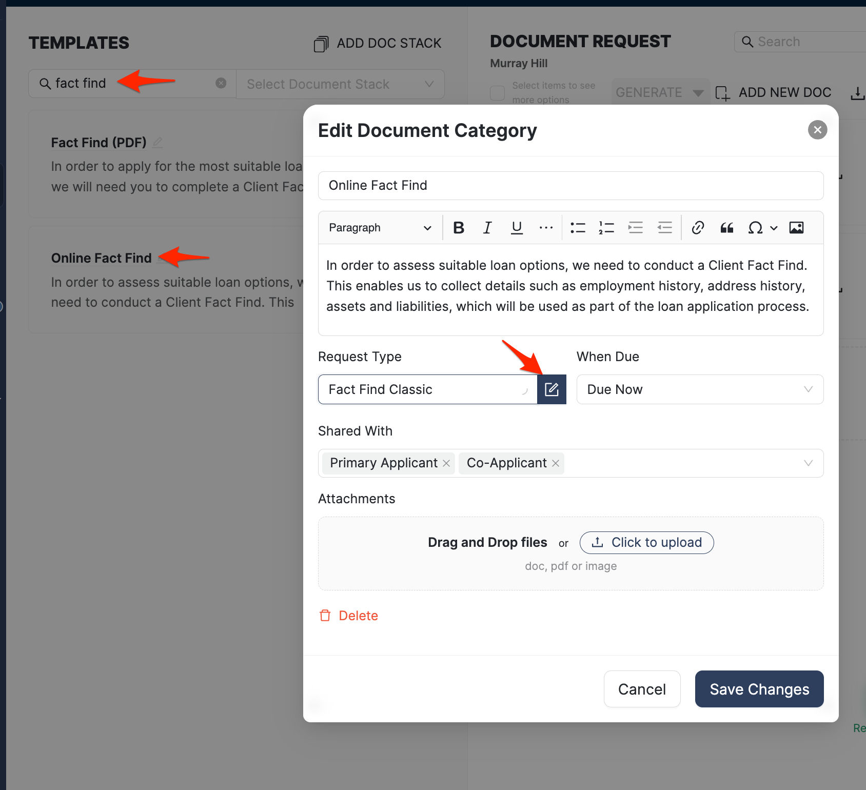 3. On the Document Stack Templates search for Fact Find.