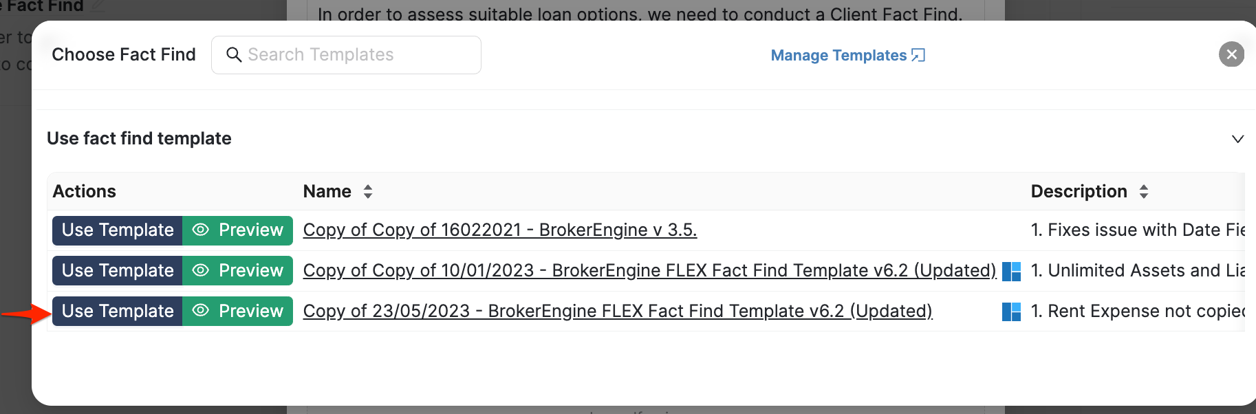 This article is only applicable for Fact Find Classic users. There are no templates to select for the Latest Fact Find.